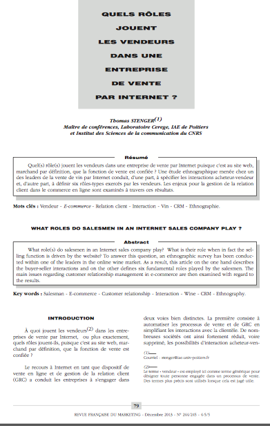 STENGER T. (2014), « Social media and online reputation management as practice : first steps towards social CRM ? »,